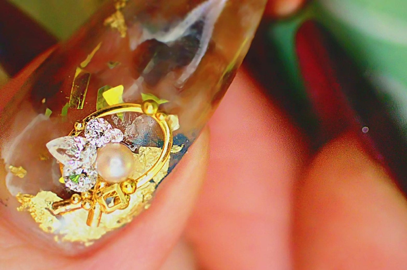 「本物のダイヤモンドをネイルにデザインすることができるの?!」そんな疑問をいだきつつ雑誌に食いつきました。そして前から気になっていたことを、ふと思い出したのです。当時は、“ラインストーンでキラキラにネイルを埋め尽くすデザイン”が流行っていましたが、ジェルコーティングをすると、キラキラ感がうしなわれてしまうのが気になっていました。